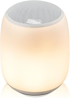 Lampe de chevet,RUNSIL Capteur tactile Lampe de table+Multicolore Dimmable Lumière de nuit avec haut-parleur Bluetooth,TF Card Assist Haut-parleur de haut-parleur de soutien Cadeau de Noël Chambres/pa
