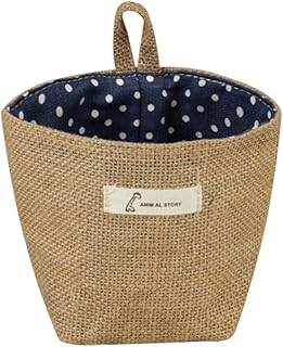 Lumanuby 1pcs Sac de Rangement Sac de Transport Lavable Sac de Voyage Toile de Jute Toile de Lin Petit Sac Suspendu Jute Petit Rayures Panier de Rangement Motif à Pois Bleus 14 * 12.5CM