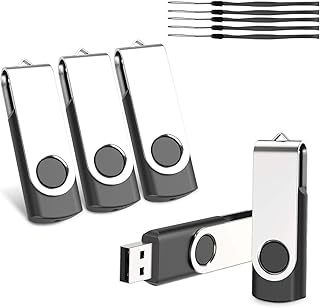 Lot de 5 Clé USB 1 Go kacai Clef USB 2.0 Flash Drive Stockage Rotation Disque Mémoire Stick Pen Drive avec Lumière LED, pour Ordinateur Portable/PC/Voiture(1GB*5PCS*Noir