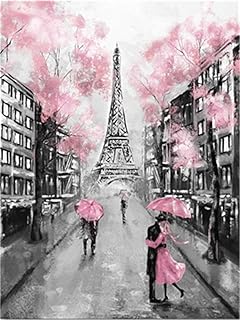 Kit de peinture à l'huile à faire soi-même pour adultes débutants - Toile numérotée - 40,6 x 50,8 cm - Image de Paris romantique - Avec pinceaux - Décoration - Pour Noël - À offrir Sans cadre
