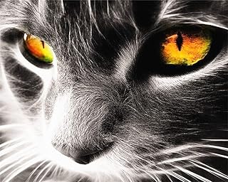 Kit de peinture à l'huile à faire soi-même - Numéroté - 40,6 x 50,8 cm - Image œil de chat - Avec pinceaux - Décoration de Noël - Pour débutants, adultes et enfants Without Frame