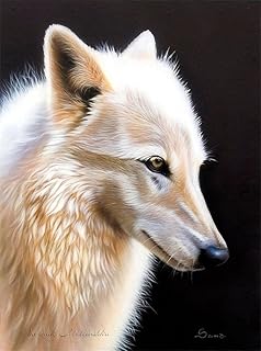 Kit de peinture à l'huile à faire soi-même - Toile numérotée - 40,6 x 50,8 cm - Image de loup blanc - Avec pinceaux - Décoration - Pour Noël-À offrir-Pour débutants, adultes et enfants Without Frame