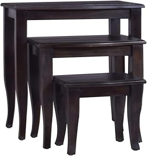 vidaXL Bois d'Acajou Massif Tables d'Appoint 3 pcs Table Gigogne Table Basse Table de Canapé Meuble de Salon Maison Intérieur Café Noir Clair