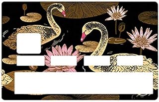 Sticker pour Carte bancaire, Cygnes et Fleurs de Lotus - Différenciez et décorez Votre Carte bancaire Suivant Vos Envies!! Facile à Poser, sans Bulle