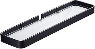 Étagère de salle de bain rectangulaire en verre pour salle de bain - Noir - Économie d'espace - En aluminium robuste avec 1 niveau de verre trempé - Sans perçage/perçage - 25 cm