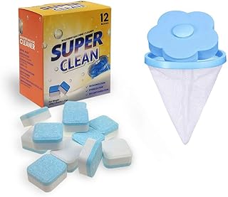 Nettoyant pour Machine à Laver, comprimés effervescents pour machine à laver utilisés pour éliminer la saleté dans le seau de la machine à laver contient 1 filet de nettoyage 12PCS