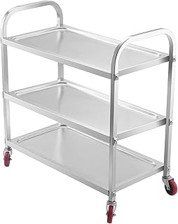 Olibelle Chariot de Cuisine à roulettes Table Roulante Desserte Chariot de Service en Acier Inoxydable Détachable 2/3 Plateaux Idéal pour Restaurants Hôtels (3 Plateaux)
