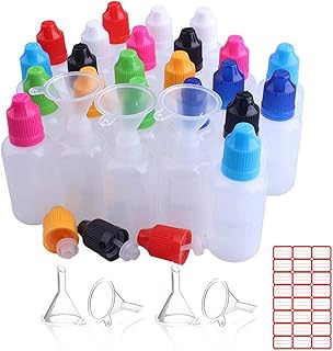12 pcs Flacons Compte-gouttes, KAKOO 30ml Bouteilles liquides Fiole vide en plastique avec entonnoire gobelet gradué pour e-liquides,DIY craft