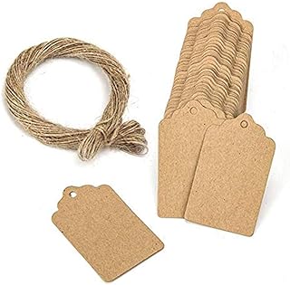 étiquettes cadeaux papier kraft avec chaîne étiquettes à bagages Lot de 100 étiquettes en papier kraft marron 4,8 x 2,8 cm avec 1 ficelle de jute de 20 m de long pour bricolage