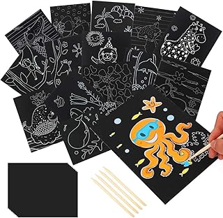Coffret Cadeau|Dessin Gratter & Coloration pour Enfants, Glaucus Scratch Art Dessin Papier à Gratter 10PCS Feuilles à Gratter|Stylet Inclus|Loisir Créatif