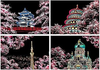 225×315mm Loisir Créatif Dessin à Gratter pour Adultes Enfants, Glaucus Papier à Gratter Scratch Art Monument Historique Sakura|Stylet Brosse Inclus|Cadeau Noël Anniversaire