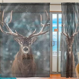 Ahomy 2 Panneaux de Rideau de fenêtre en Voile Motif cerf de Noël en Hiver pour fenêtre de Salon ou Chambre à Coucher 198 x 139,7 cm, Polyester, Multicolore, 139.7x198.1 cm