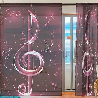 Ahomy 2 rideaux en voile de fenêtre avec notes de musique en tulle pour fenêtre de salon, chambre à coucher 198,1 x 139,7 cm