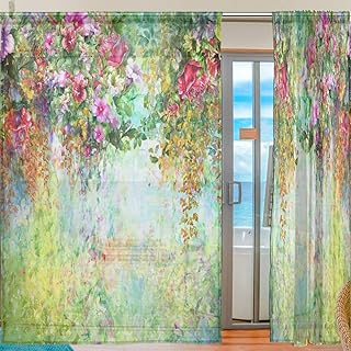 Ahomy Rideau de fenêtre en voilage, 2 panneaux aquarelle, fleurs tropicales, feuilles de tulle, rideaux pour salon, fenêtre, chambre à coucher, 78 x 55 cm, Polyester, multicolore, 139.7x213.4 cm