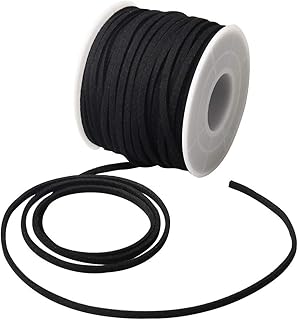Yuanzi Cordon de Daim Faux, Cordon Suedine Noir en Cuir Faux Fil Plat pour Fabrication Bracelet Collier Tresse Bijoux DIY(23m x 3mm, Noir)