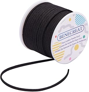 BENECREAT 33 mètres 3mm de Large Cordon Faux Daim pour la Fabrication de Bijoux de Bricolage, Micro-Fibre Dentelle Plate Faux Cuir Daim Cuir Artisanat pour Bracelet Collier Cordon de Perles