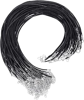 AMACOAM 30 Pièces Cordon Cire pour Collier Noir Cordon Collier pour Pendentif Cordon Cuir 2mm Collier en Cuir Cordon avec Fermoir Mousqueton pour Fabrication de Bijou Collier Pendentif