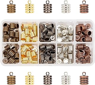 PandaHall 150pcs 5 Couleurs Extrémités du Cordon de Bobine 6mm Terminateurs d'extrémités de Cordon en Cuir Astuce de Fin Chapeaux de Perles pour la Création de Collier de Bracelets de Cordon en Cuir