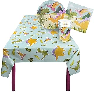 Boland 50061 Set de Vaisselle de fête en Carton avec 6 Assiettes, 6 gobelets, 12 Serviettes, 1 Nappe, Dinosaure, Vaisselle jetable, Carton pour Anniversaire d'enfant, fête à thème