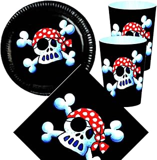 36 Pièces : jOLLY rOGER-serviettes, gobelets et assiettes en carton pour anniversaire confettis format xXL/assiette/tasse repas vaisselle party décorative en carton jetables pour enfant motif pirates thème tête de mort pirate
