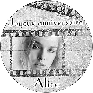 Décoration gâteau Anniversaire thème Cinema 18 Ans - Disque Sucre Comestible 20 cm - Personnalisez avec Votre Photo en Haut à Droite