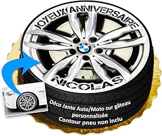 DECORATION GATEAU ANNIVERSAIRE THEME VOITURE MOTO pâte sucre comestible 20 cm. !! PERSONNALISEZ MAINTENANT bouton orange en haut à droite du titre produit