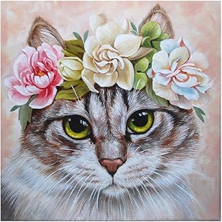 Kit de peinture diamant 5D DIY, peinture au diamant par numéro, art de diamant pour enfants, chat avec fleur en cristal percé strass broderie point de croix d'artisanat sur toile 30 x 30 cm