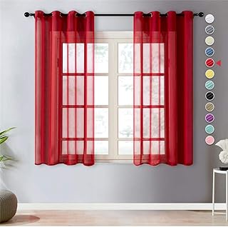 Topfinel Lot de 2 Rideaux Voilage Rouge 140x175 cm à Oeillets en Lin Imitation Voilage Fenêtre Transparent pour Salon Voilage Grande Largeur Décor Cuisine Chambre Enfant