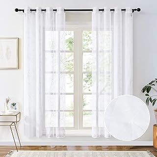 Topfinel 2 Panneaux Rideaux en Voile Transparent à Oeillets Voilage de Fenêtre Brodé de Points Nid d'oiseau Rideaux Voilage Décoration Salon Chambre Enfant,140x225cm,Blanc