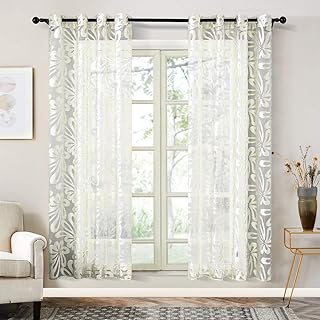 Topfinel Lot de 2 Rideaux Voilage Léger 140x215 cm Imprimé à Motif Fleur Crème à Oeillets Voilage Semi Transparent Décoration Salon Moderne Chambre Enfant