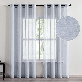 Topfinel Lot de 2 Rideau Blanc Voilage 140x145 CM à Oeillets Décor Cuisine Chambre Rideaux Lin Fenêtre en Effet Grain Fin Semi-Transparent pour Salon Enfant Baie Vitrée