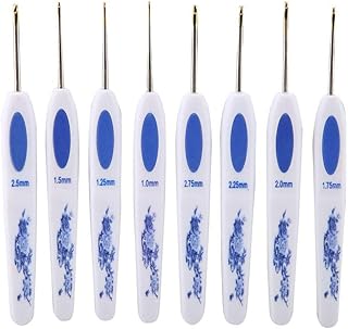 8 pcs Ensemble d’Aiguilles à Tricoter, Kit de Crochets à tricoter Crochets En Aluminium Set Porcelaine Impression Poignée Aiguilles À Tricoter Artisanat Fil À Coudre Outil(Small Golden Crochet)