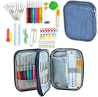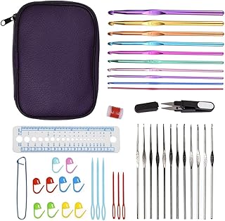 Aweisile tricot 22 Pieces Crochet Aiguille Kit Multicolore Crochets Aiguilles en Aluminium Aiguilles à Tricoter Crochet de Tricot Outils avec Sac Nécessaires à Tricoter Crochets Outils Trousse En Cuir