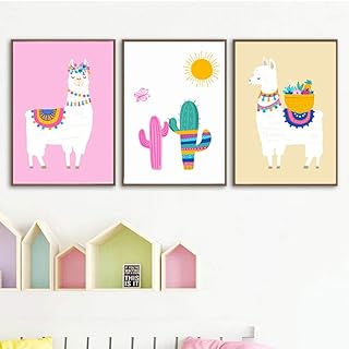 FANGYUAN Lama Cactus pépinière Mur Art Toile Affiches Imprime Nordique Dessin animé Animaux alpaga Peinture Mur Photo Fille Chambre décor à la maison-30X40Cmx3 sans Cadre