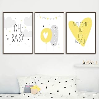 SHINERING Coeur Jaune Ballon Nuage Citations Mur Art Toile Peinture Nordique Affiches Et Gravures Mur Photos Bébé Chambre des Enfants Pépinière Décor No Frame
