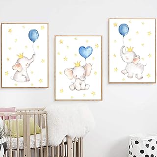 xwwnzdq Éléphant Lune Enfant Affiche bébé Mur Art Toile pépinière Impression Peinture Animale Nordique Enfants Chambre décoration Photo 50x70cmx3 sans Cadre
