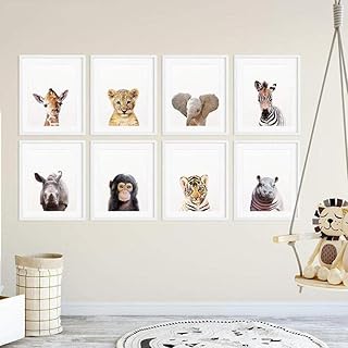 ZDFDC Cartoon Safari Animal Wall Art Toile Peinture Pépinière Affiches et Impressions Enfants Chambre de Bébé Décoration Murale Photos-21x30cmx8 sans Cadre