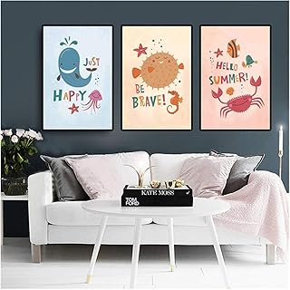 ZXYFBH Tableau Decoration Murale Dessin animé sous-Marin Poisson Animal Toile Peinture Affiches et Impressions Mur Pop Art Photo pour Enfants Chambre d'enfant 15.7x23.6in (40x60cm) x3pcs sans Cadre