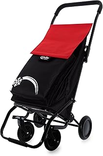 GARMOL 75tloop LC C644 Chariot de Courses 4 Roues Rotatif 360 ° Pliable, Tissu, Noir et Rouge, 45 x 33 x 112 cm